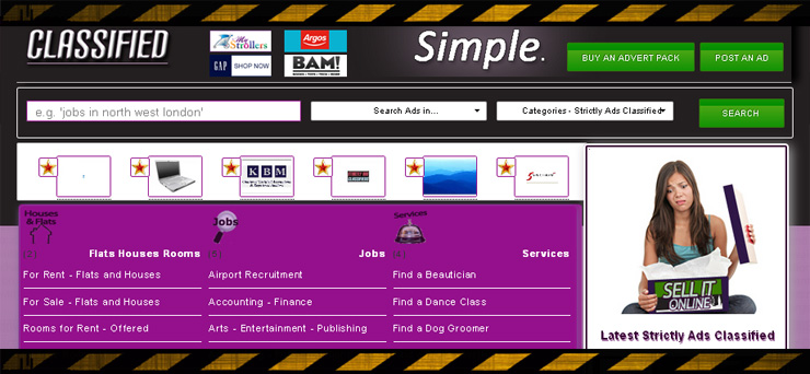 Classified Ads Website from £1095.00 Are you and estate agent, or a lettings agency with properites, flats and or rooms to let in London or UK? You could benefit from you own inhouse classified ads system, or perhaps you are a recruitment agency nedding an ads board or jobs board.